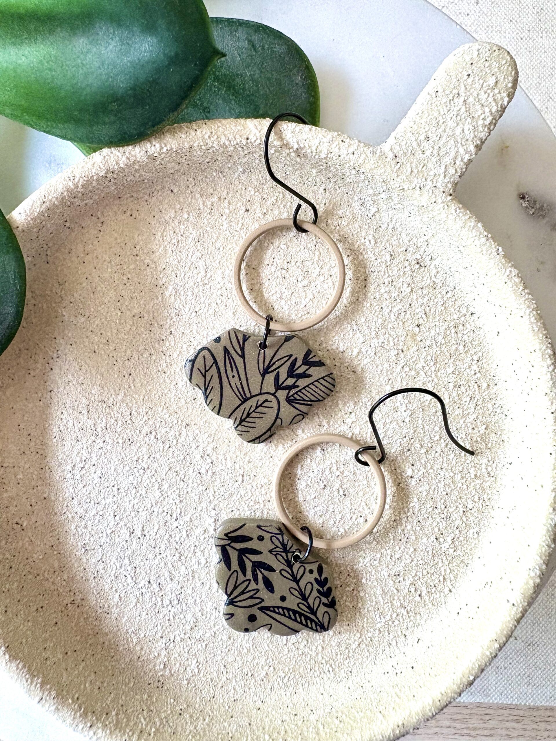 Zwarte oorhaakjes met handgemaakte polymeer klei hangers