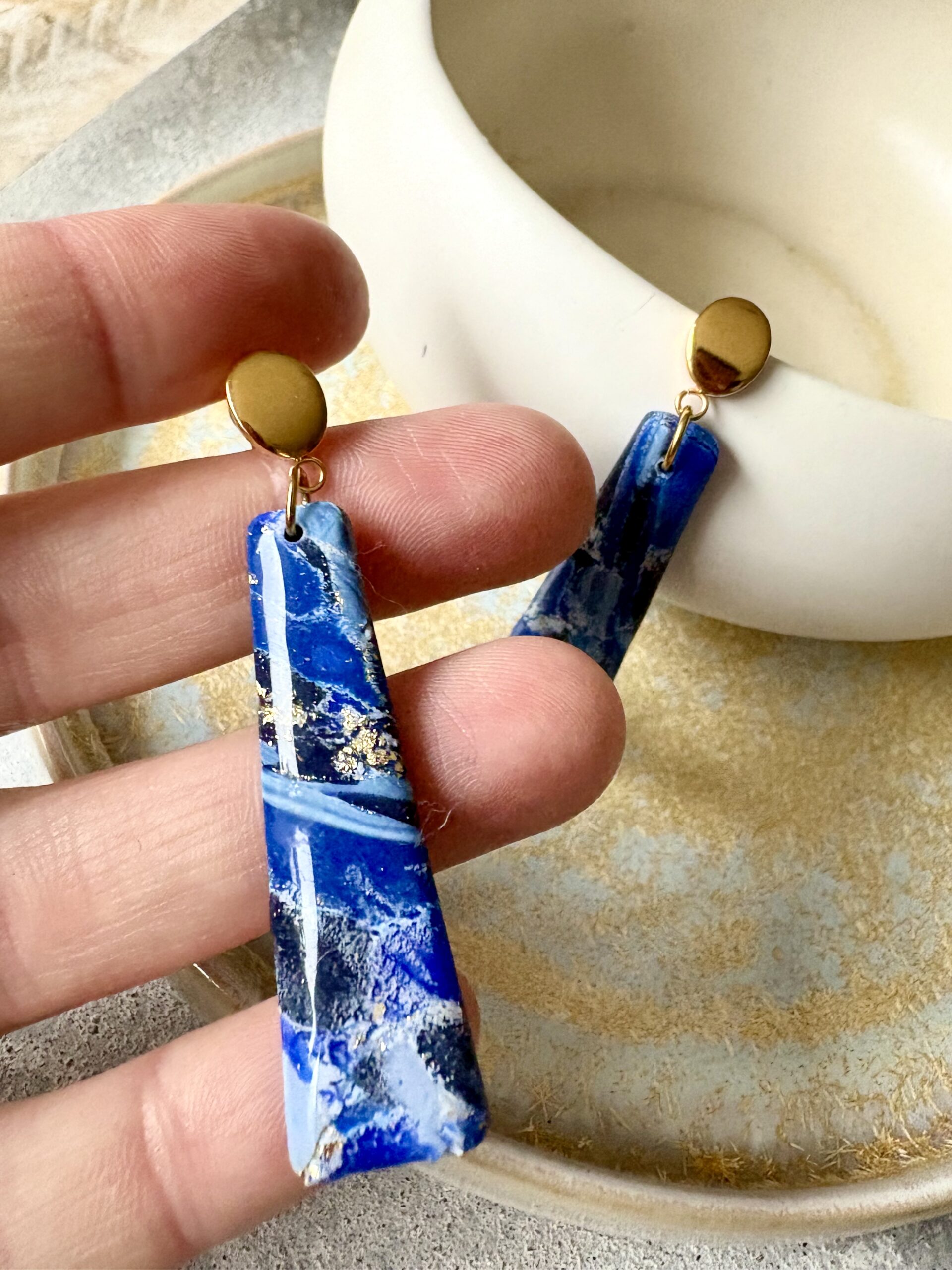 Stainless steel oorstekers met handgemaakte polymeer klei hangers, afgewerkt met een glanzend laagje epoxy resin