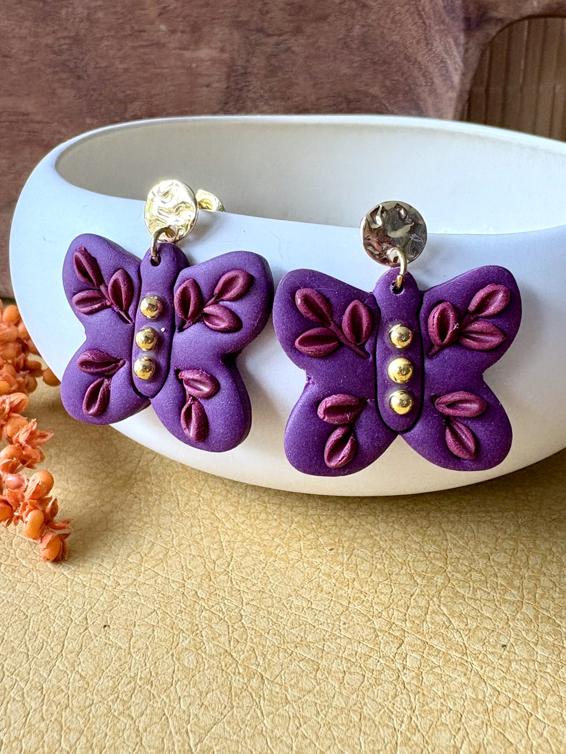 Stainless steel oorstekers met handgemaakte polymeer klei vlinders