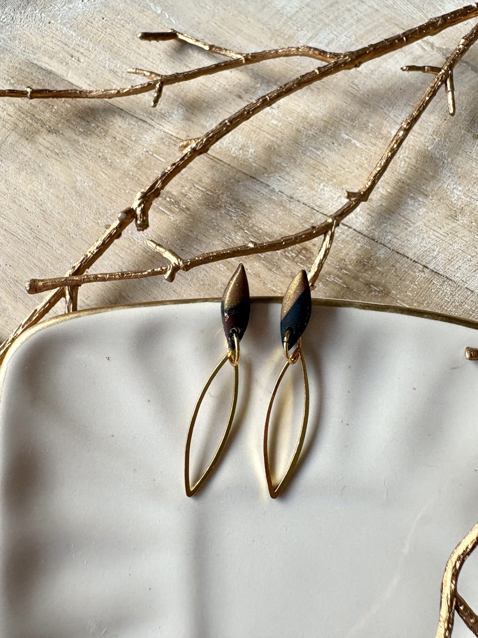 Stainless steel oorstekers met handgemaakte polymeer klei studs en stainless steel hangertjes