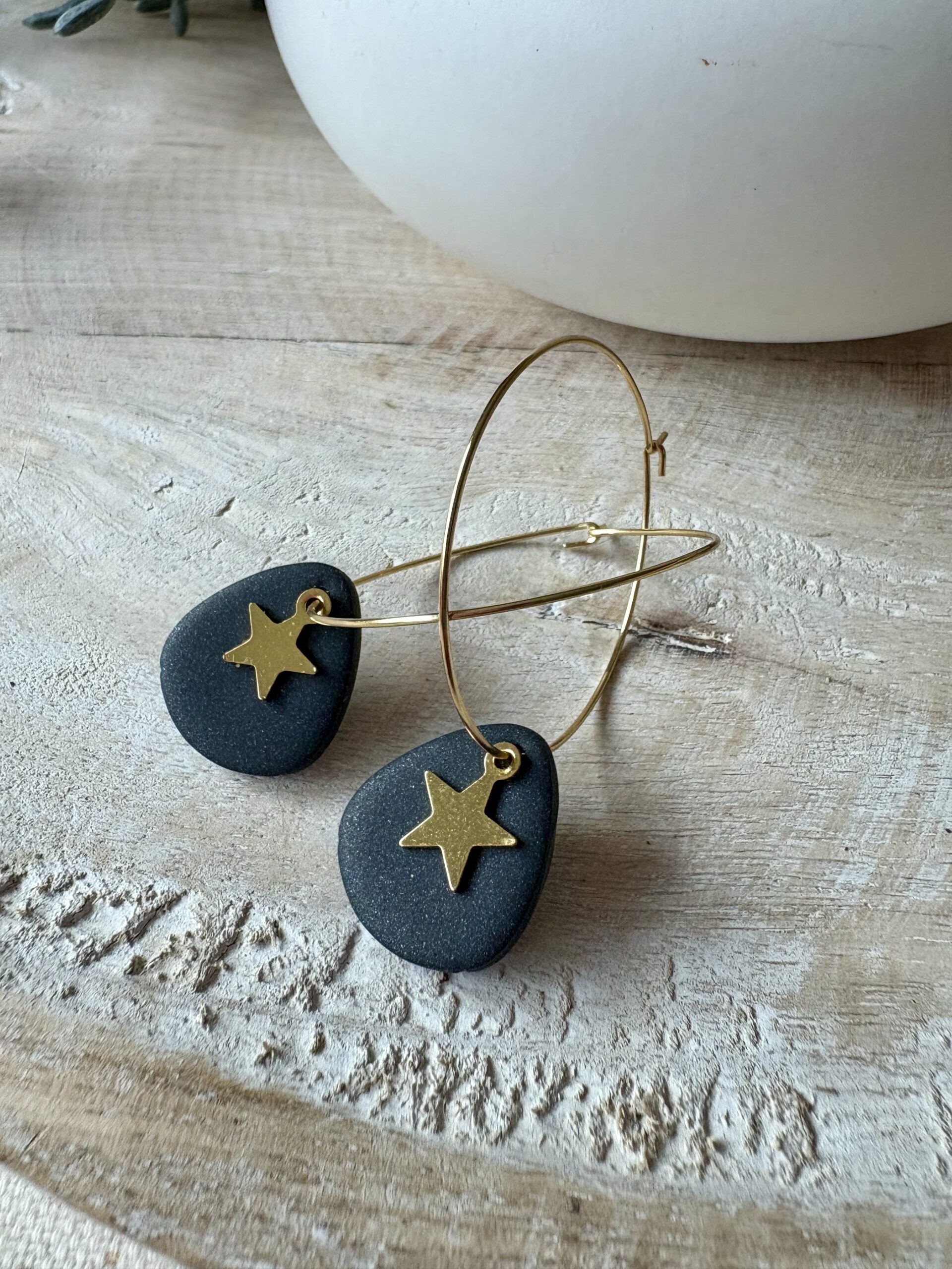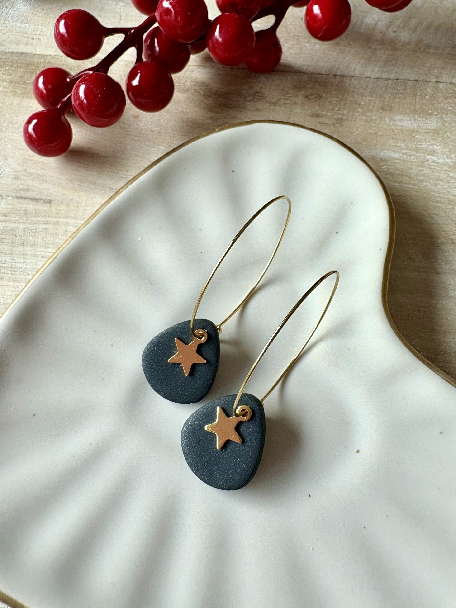Stainless steel oorringen (hypoallergeen en verkleuren niet) met handgemaakte polymeer klei hangers en sterretjes